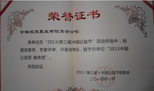 公司榮獲“2013中國公益獎(jiǎng)-集體獎(jiǎng)”