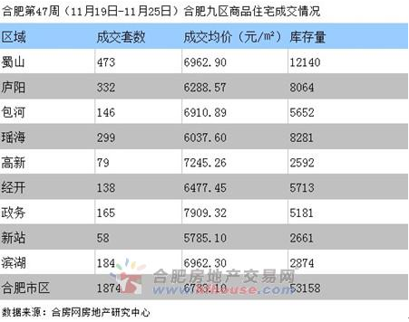 合肥第47周(11月19日-11月25日)合肥九區(qū)商品住宅成交情況