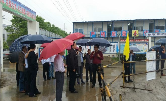 2016年6月3日下午,滁州市人民政府副市長楊東坡在全椒縣常務(wù)副縣長楊光、全椒經(jīng)濟(jì)開發(fā)區(qū)管委會副主任倪學(xué)標(biāo)及滁州市有關(guān)部門負(fù)責(zé)人的陪同下,深入皖投水岸星城綜超項(xiàng)目施工現(xiàn)場組織開展調(diào)研。