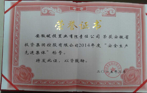 公司榮獲2014年度“安全生產先進集體”稱號