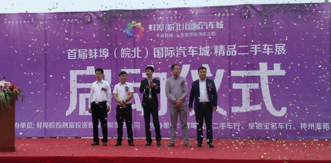 首屆蚌埠(皖北)國際汽車城精品二手車展于2016年5月14日在蚌埠國際汽車城會展中心舉行啟動儀式,此次車展為期兩天,由蚌埠皖投融富投資管理有限責任公司主辦,宏翔二手車行、星德寶名車行、神州準新車、百誠名車館四家蚌埠地區(qū)知名二手車行協(xié)辦。