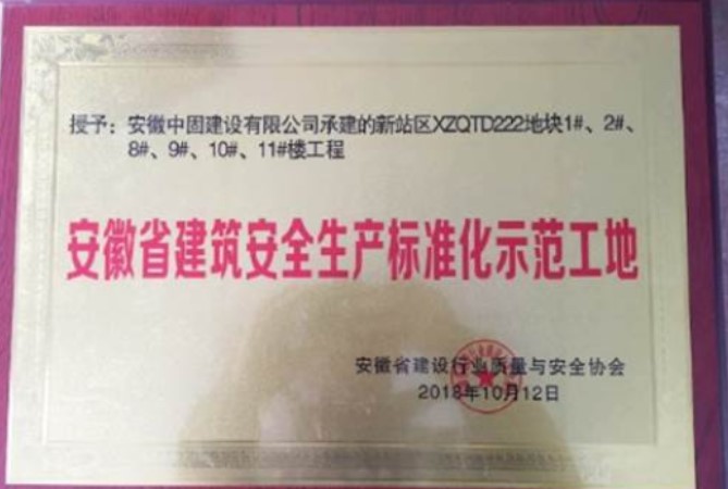 2018年10月12日,天下藝境項(xiàng)目榮獲“2018年安徽省建筑安全生產(chǎn)標(biāo)準(zhǔn)化示范工地”,并于11月30日授牌。