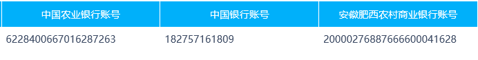 開(kāi)戶銀行:中國(guó)農(nóng)業(yè)銀行肥西縣支行