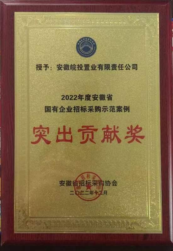 在由安徽省招標(biāo)采購(gòu)協(xié)會(huì)舉辦的“2022年度安徽省國(guó)有企業(yè)招標(biāo)采購(gòu)示范案例”評(píng)選活動(dòng)中,皖投置業(yè)公司編寫的“皖投置業(yè)公司2022年(第一批次)項(xiàng)目電梯集中采購(gòu)”案例獲得表彰,被授予“突出貢獻(xiàn)獎(jiǎng)”稱號(hào)。